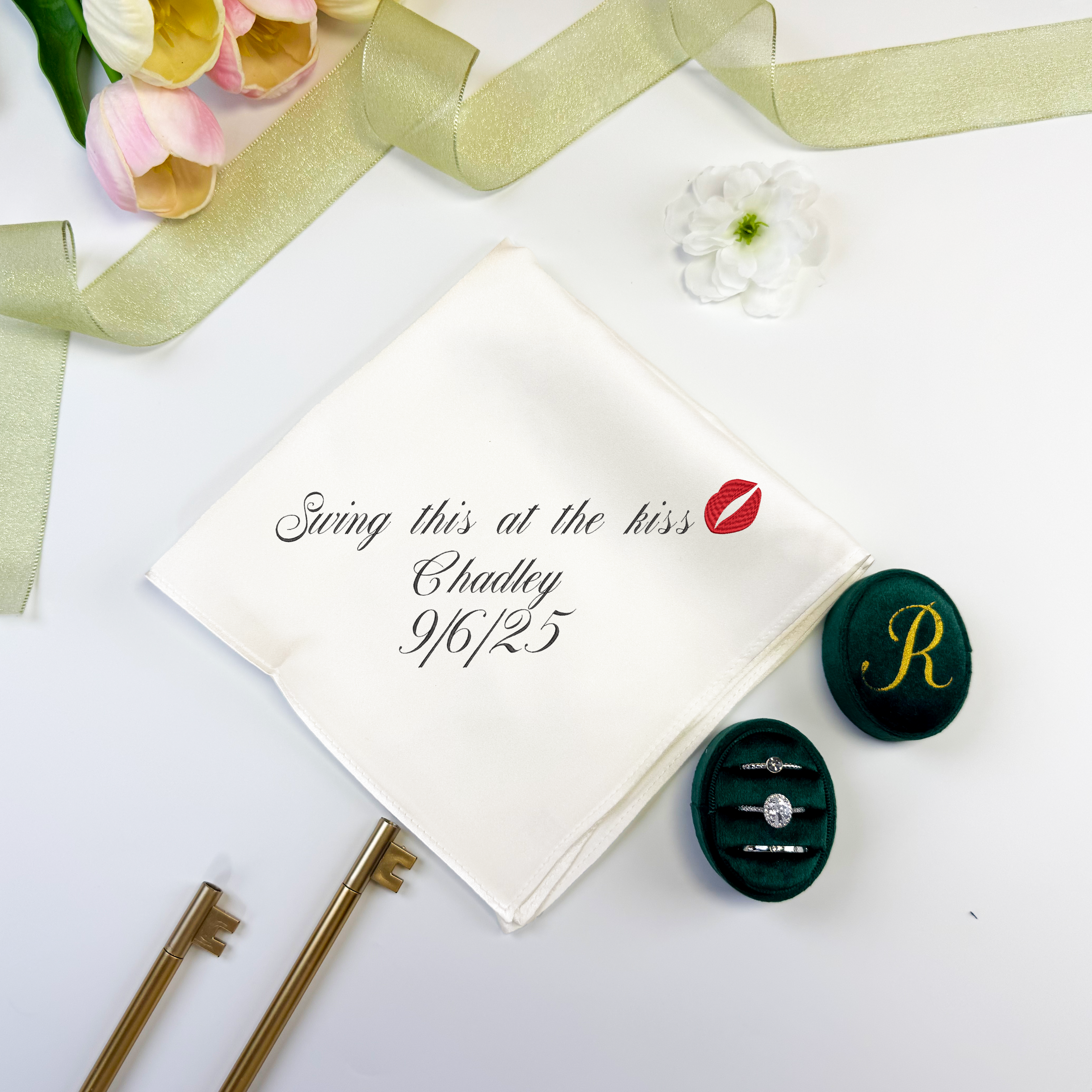 This order is custom handwritten embroidered handkerchief for Pamela Mendelsohn. Order include 110 custom handwritten embroidered handkerchief with design Pamela requested.